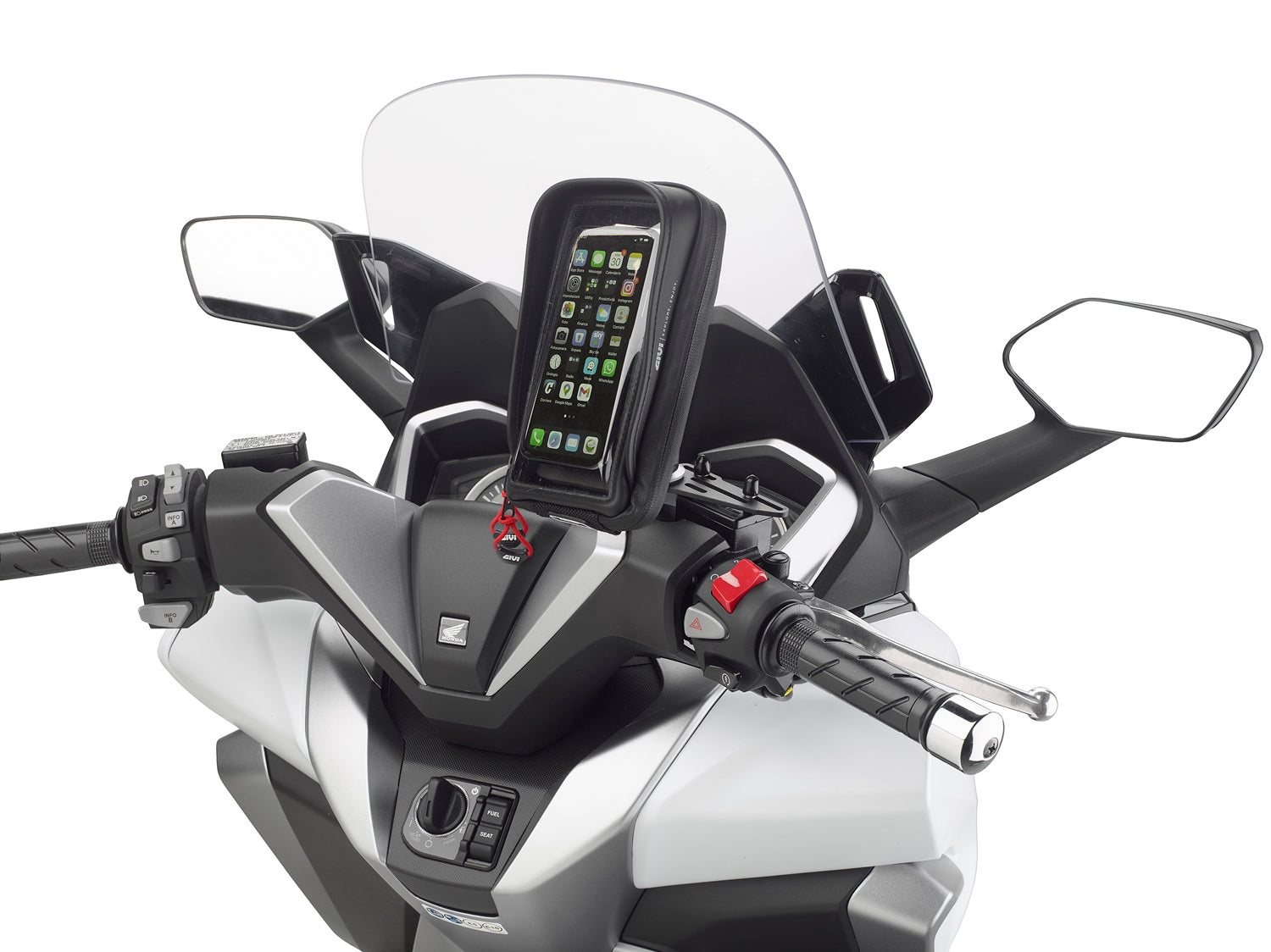 The S904B adds to the range of mount options for Givi’s patented S95- series phone and GPS holders. This aluminium and technopolymer mount is fitted to the master cylinder reservoir cap of the brake or clutch and is compatible with Givi’s S952B-S958B phone holders. The swivel piece can be removed and the S920 Smart Clip can be fitted in its place. A range of -VKIT bike-specific kits are available for easy installation on compatible models – see www.givi.com for fitments.