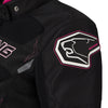 Summer jacket tailored for women in a very abrasion resistant fabric; with large mesh inserts for good ventilation. With certified protections on shoulders and elbows.