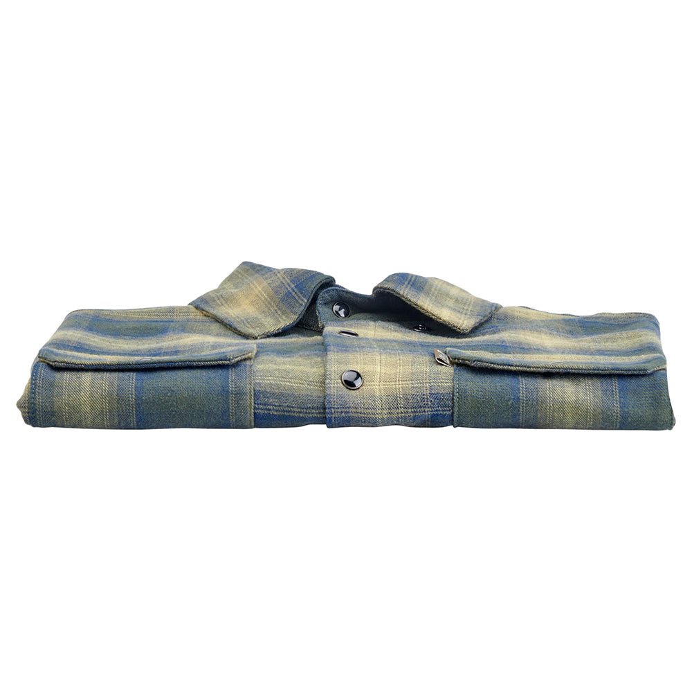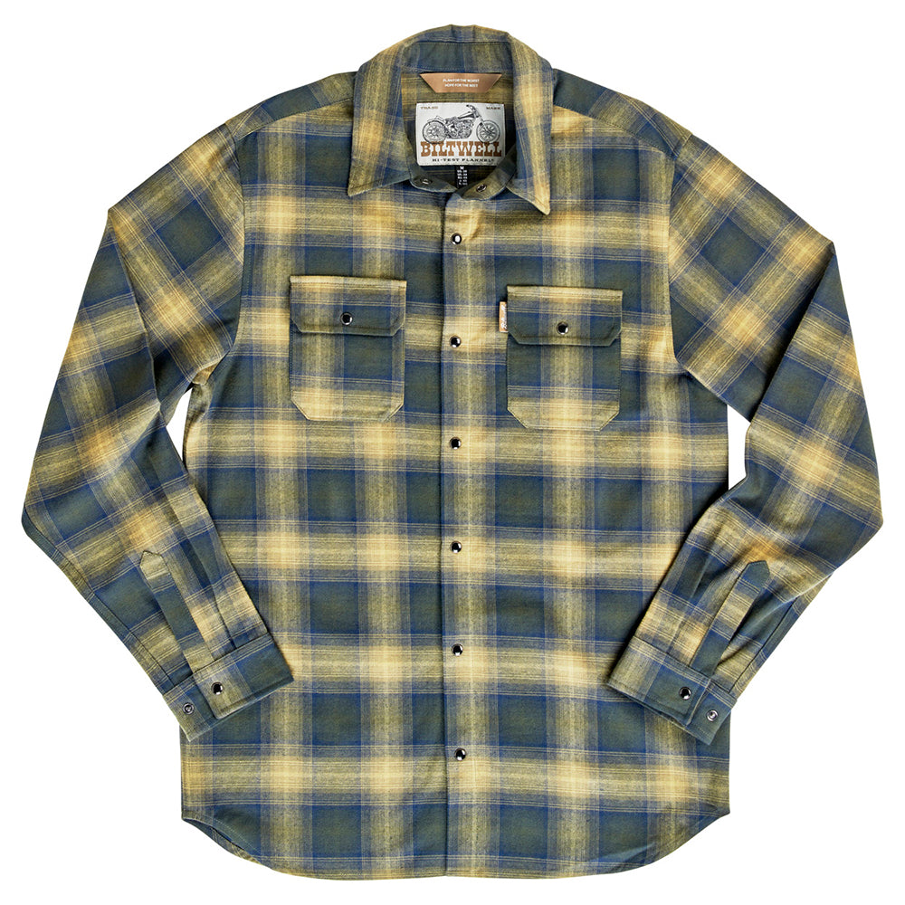 Our Hi-Test Flannel lets you move from job site to date night without breaking a sweat. Crafted with 100% heavyweight cotton for durability and comfort. Roomy tailoring enhances mobility. Single- and double-needle polyester stitching throughout. Moto-specific features include elastic thumb loops inside the cuffs, and hidden snaps in the collar tips to kill collar flap at high speeds.