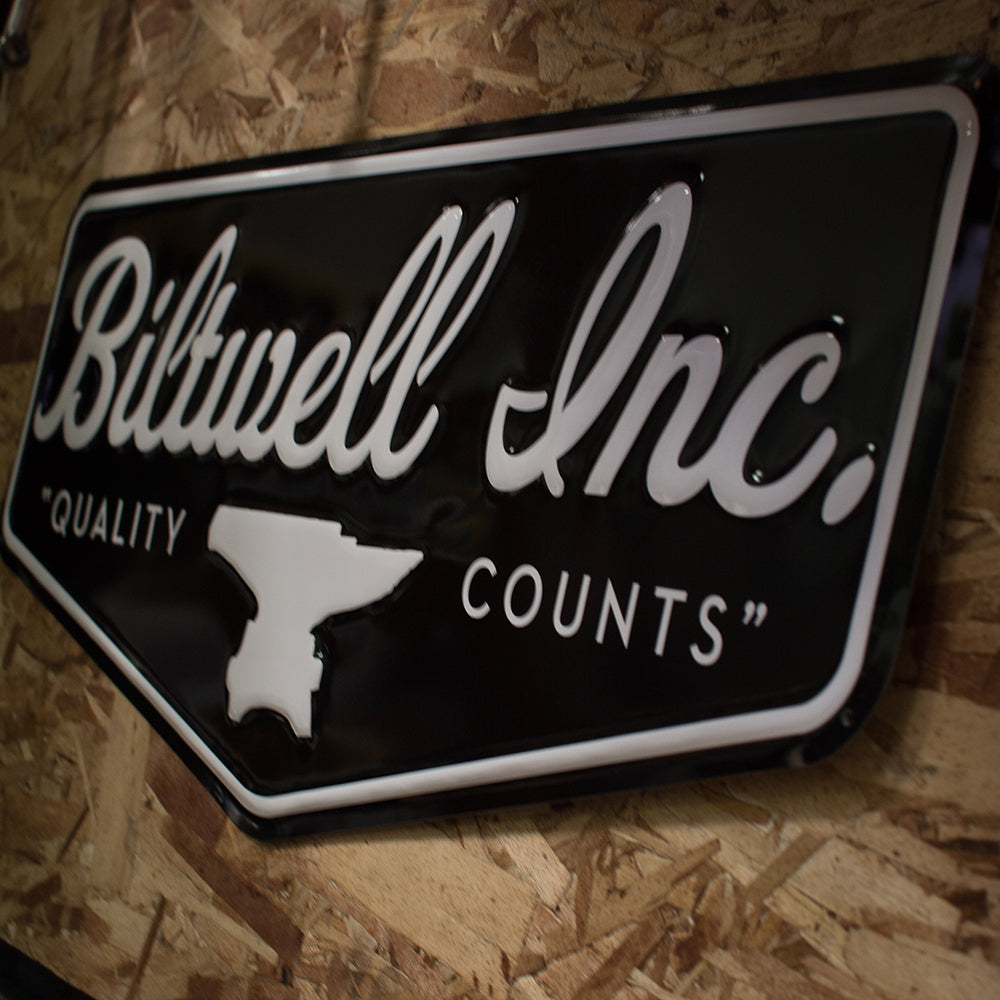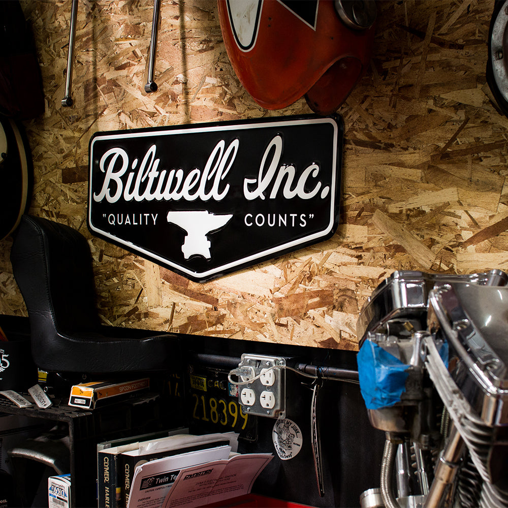 In 50 years one of these made in USA stamped aluminum Biltwell shop signs might sell for 5,000 bucks on season 75 of "American Pickers".