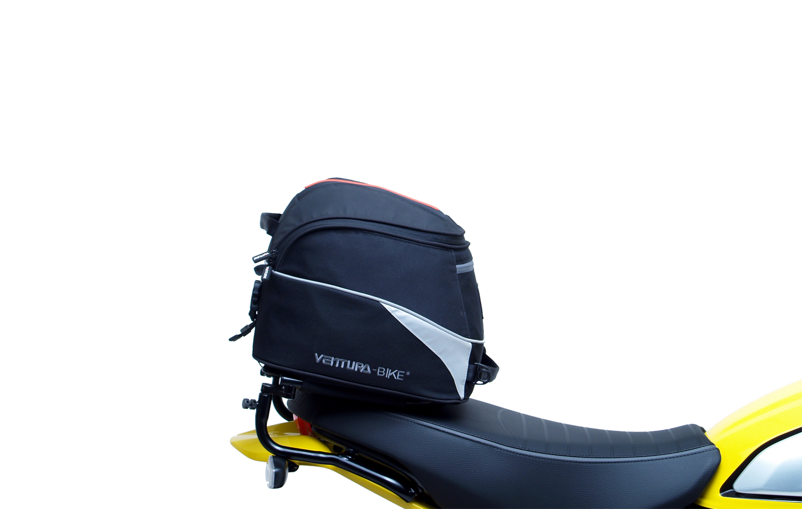 Ventura Aerodynamic Bike-Pack Systems make motorcycle luggage easy. The luggage rack system consists of 3 core components. The L-Brackets, the Luggage Racks and the Packs. Each system is individually designed and custom-made for your model bike to compliment its looks and handling.
