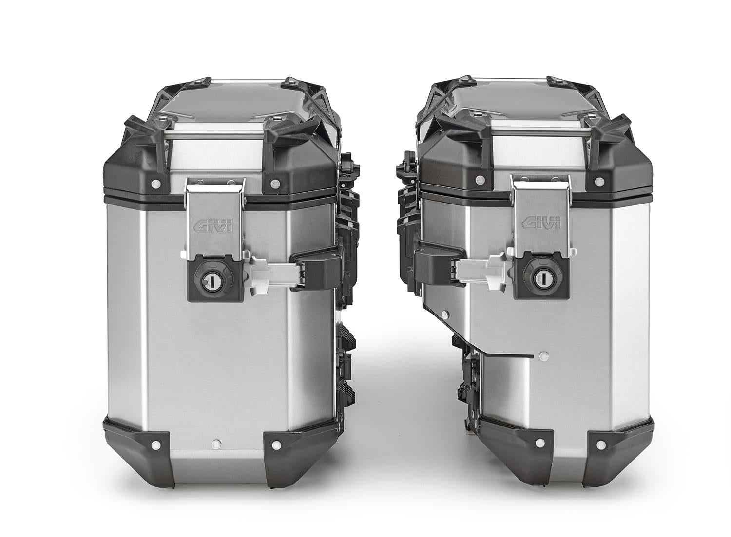 Trekker Outback is the top of the range aluminium touring case from Givi, designed specifically for off-road use. Made from natural aluminium, the Trekker Outback EVO side case is available in versions for the right- and left-hand sides, which can be matched to other Trekker Outback panniers. The fastening mechanism used is MONOKEY® CAM-SIDE, while these EVO versions also offer anti-vibration points in cast aluminium and new hooks towards the bottom, which ensure a secure hold even on dirt roads and can be repaired in the event of strong impacts.
