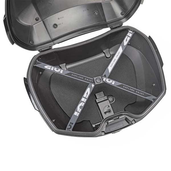 The Givi V49N Air top case is designed to transform your ride in both performance and style. Equipped with the patented WINGFLOW system, tested in the wind tunnel by Givi’s R&D team, the V49 reduces vibration, cuts wind noise and improves stability by directing airflow smoothly past the case. With two silver-painted aerodynamic wings on each side, it doesn’t just work better, it looks sharper too.