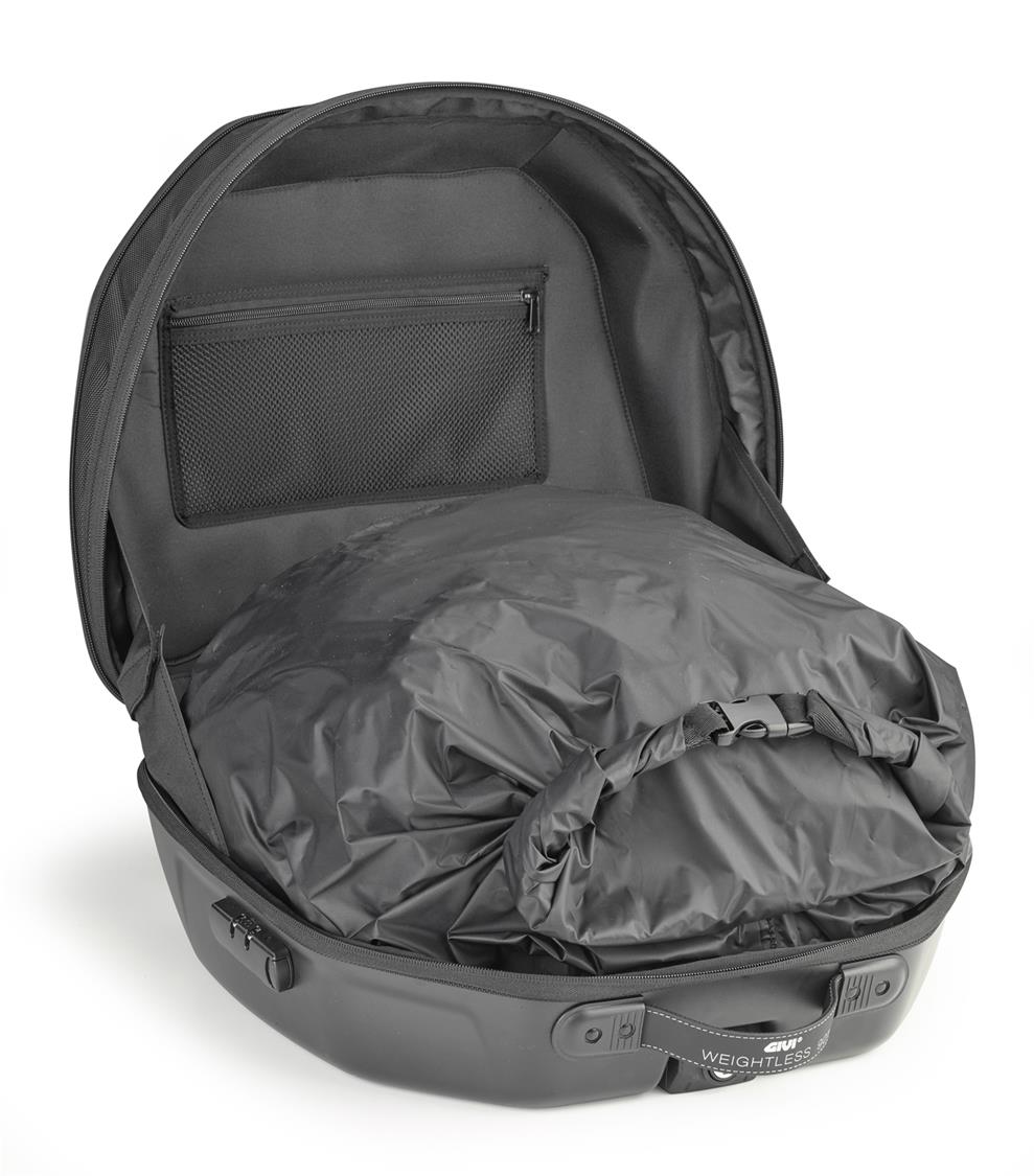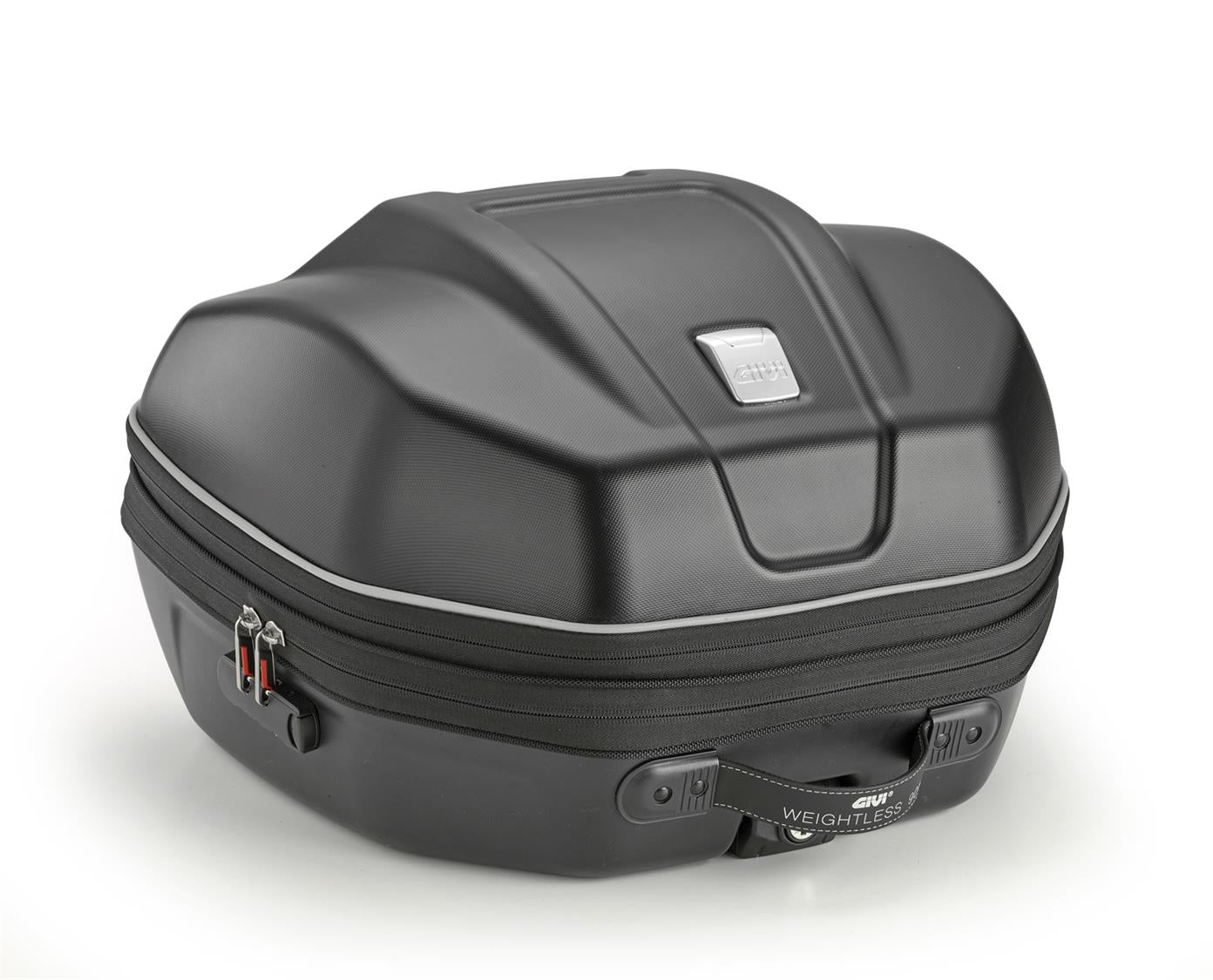The new Weightless range from Givi is a semi-rigid pannier and top box system, designed to mount on standard Monokey hardware. Light weight, stylish, durable and expandable with zip closure, the WL range is perfect for those looking for extra luggage capacity, without the bulk of full touring cases. The WL901 semi-rigid top case is expandable from 29-34 litres, and big enough to hold a modular helmet.