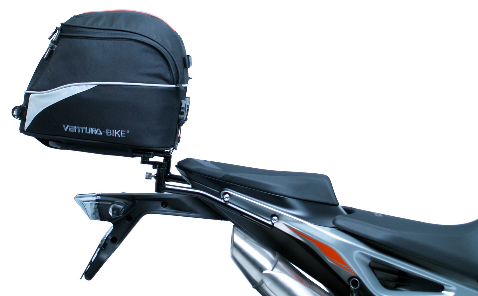 Ventura Aerodynamic Bike-Pack Systems make motorcycle luggage easy. The luggage rack system consists of 3 core components. The L-Brackets, the Luggage Racks and the Packs. Each system is individually designed and custom-made for your model bike to compliment its looks and handling.