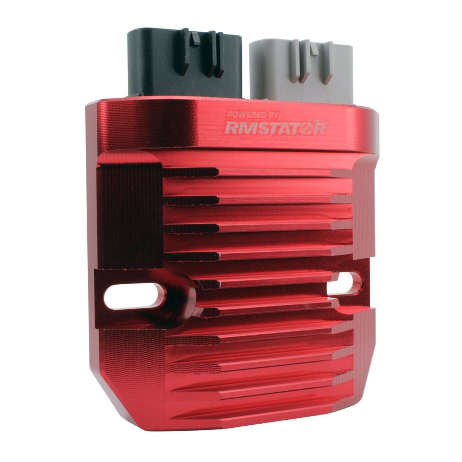 Our new red machined aluminum Mosfet voltage regulator is a great upgrade for heat dissipation in any Powersports charging system. After 10 minutes of use, our billet aluminium heatsink runs cooler by 33% than standard cast regulator housings. Our new red regulator, equipped with the renowned Mosfet regulation technology, is an added value to any three-phase permanent magnet charging system.