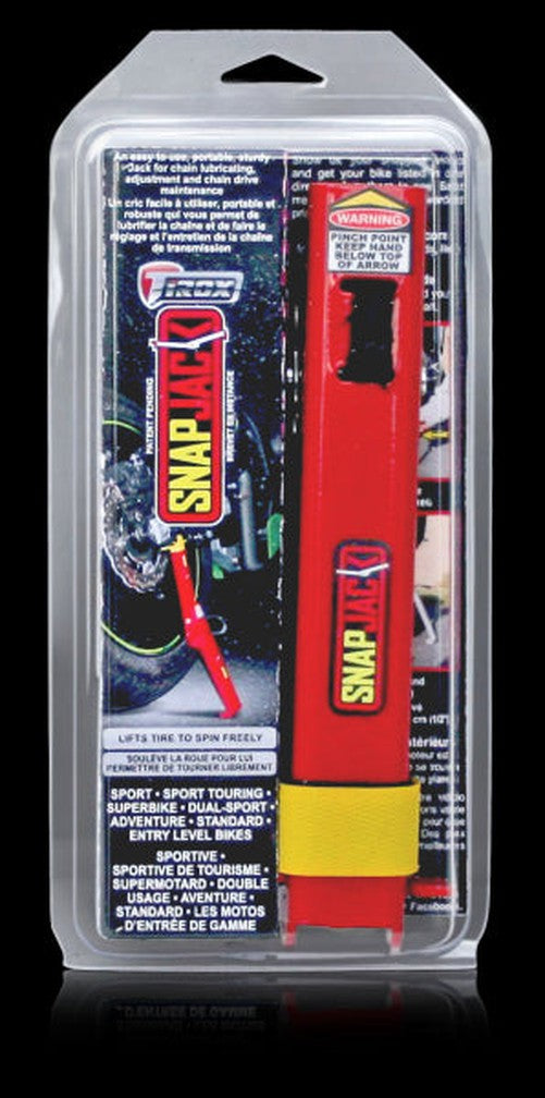 Improved lightweight design, weighs 35% less (just 550gm) than previous SnapJack models Allows you to raise the rear tire slightly off the ground to spin the tire for chain cleaning/lubricating/adjustment and tire/rim cleaning