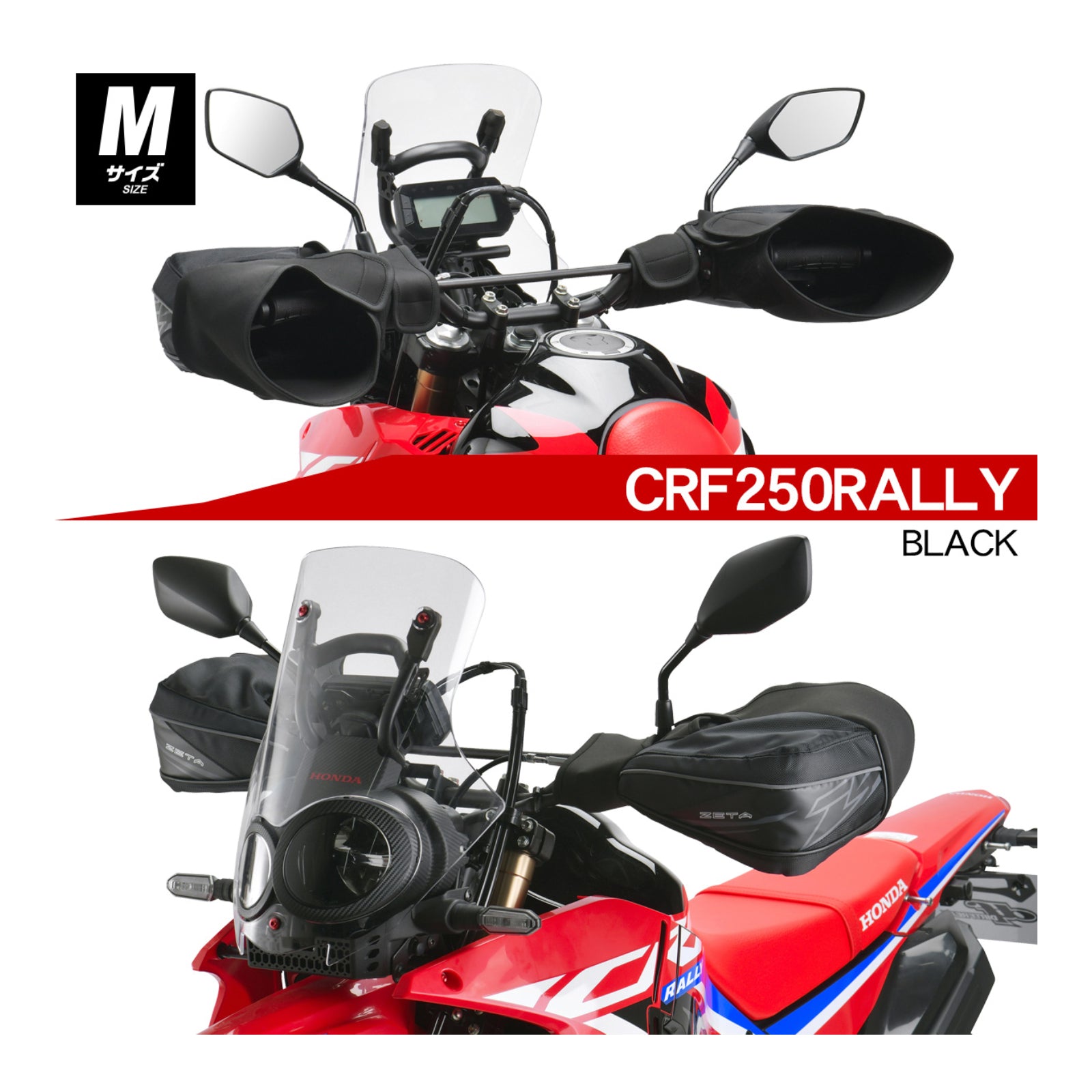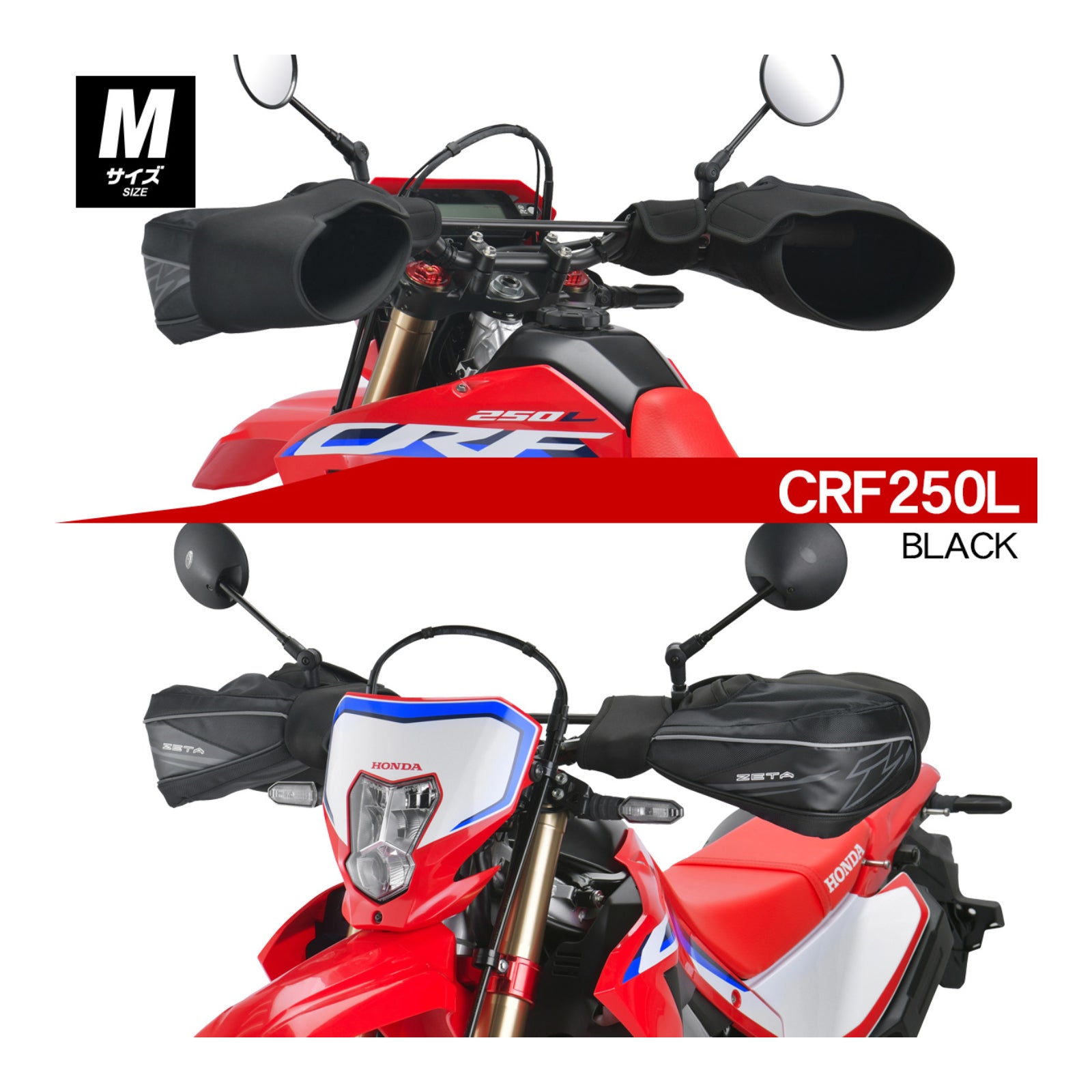 When touring, the wrist opening can be adjusted narrower to prevent the wind from entering the hand warmer and improves the protection against cold and wind. The large size L can narrow the outside of the wrist opening more than the size M. The capability makes it ideal for long hours of touring. When riding in the dirt, the wrist opening can be adjusted wider to improve maneuverability and not interfere with riding. In the event of an unexpected fall, it is easy to remove your hands from the hand warmer and ride safely.