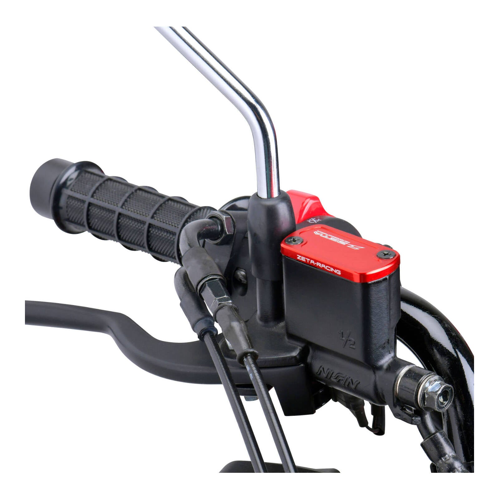 - The brake and clutch fluid reservoir cover has been coated using a special anodising process.