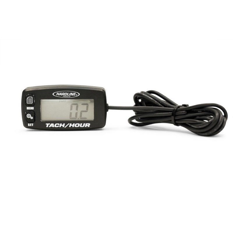 Surface Mounted Inductive Hour Tachometer Meter. Works on any gasoline engine up to 8 cylinders. Knowing what to service and when, is the key to a successful preventative maintenance program for your motorcycle, ATV, PWC, Boat and Generator. Meter display can be read at all times. The hour tachometer meter shows total hours accumulated when engine is off. Shows Tachometer when engine is running. Adjustable inductive inputs for multiple spark combinations. Installation is easy with simple one wire wrap around spark plug boot or head of pen stick coil. Green backlighted LCD display measures 1 5/8" wide x 5/8" high. Built in replaceable battery and battery level indicator on screen display.