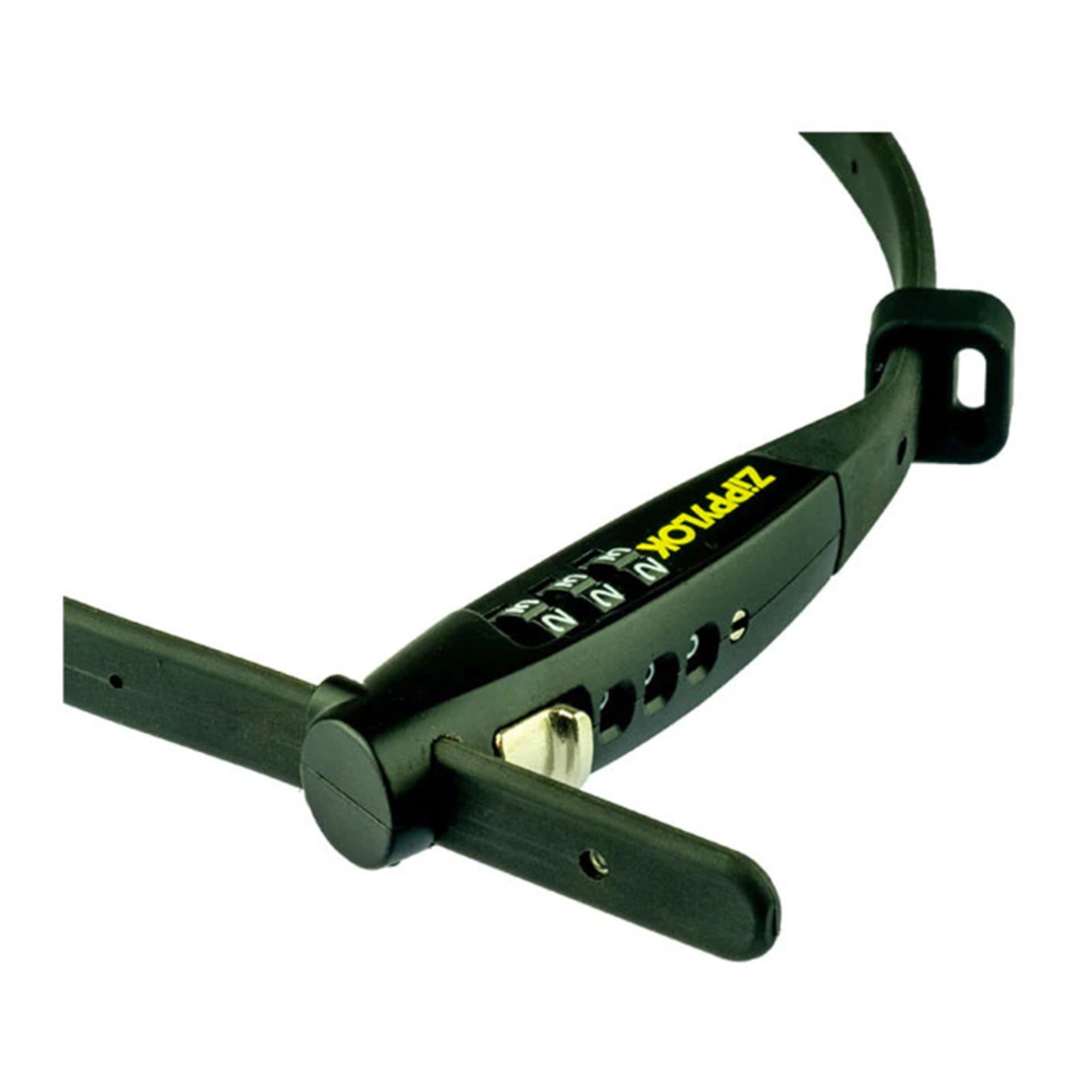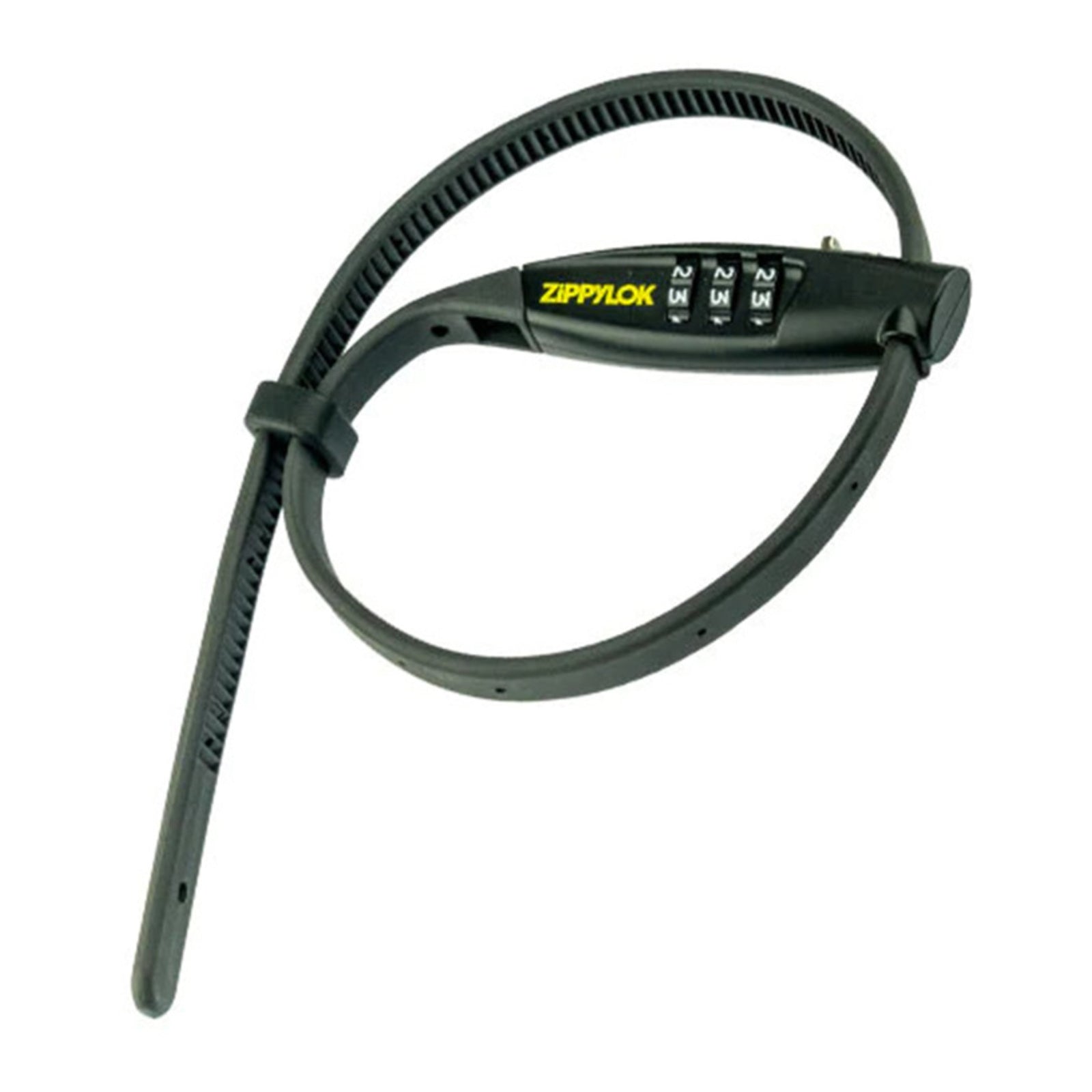 Secure your essentials - helmet, luggage, and jacket - to your bike with the ZippyLok! This lockable "zip tie" is a fully adjustable ratcheting system with a resettable, 4-digit combination lock. Its maximum adjustable circumference is 260mm, and it weighs just 113g, making it an ideal travel companion, easily fitting into any pocket or tank bag. The strap is made from a steel core, wrapped in anti-scratch plastic to protect your bike. The weather-resistant body and locking mechanism are made from zinc alloy for absolute security.