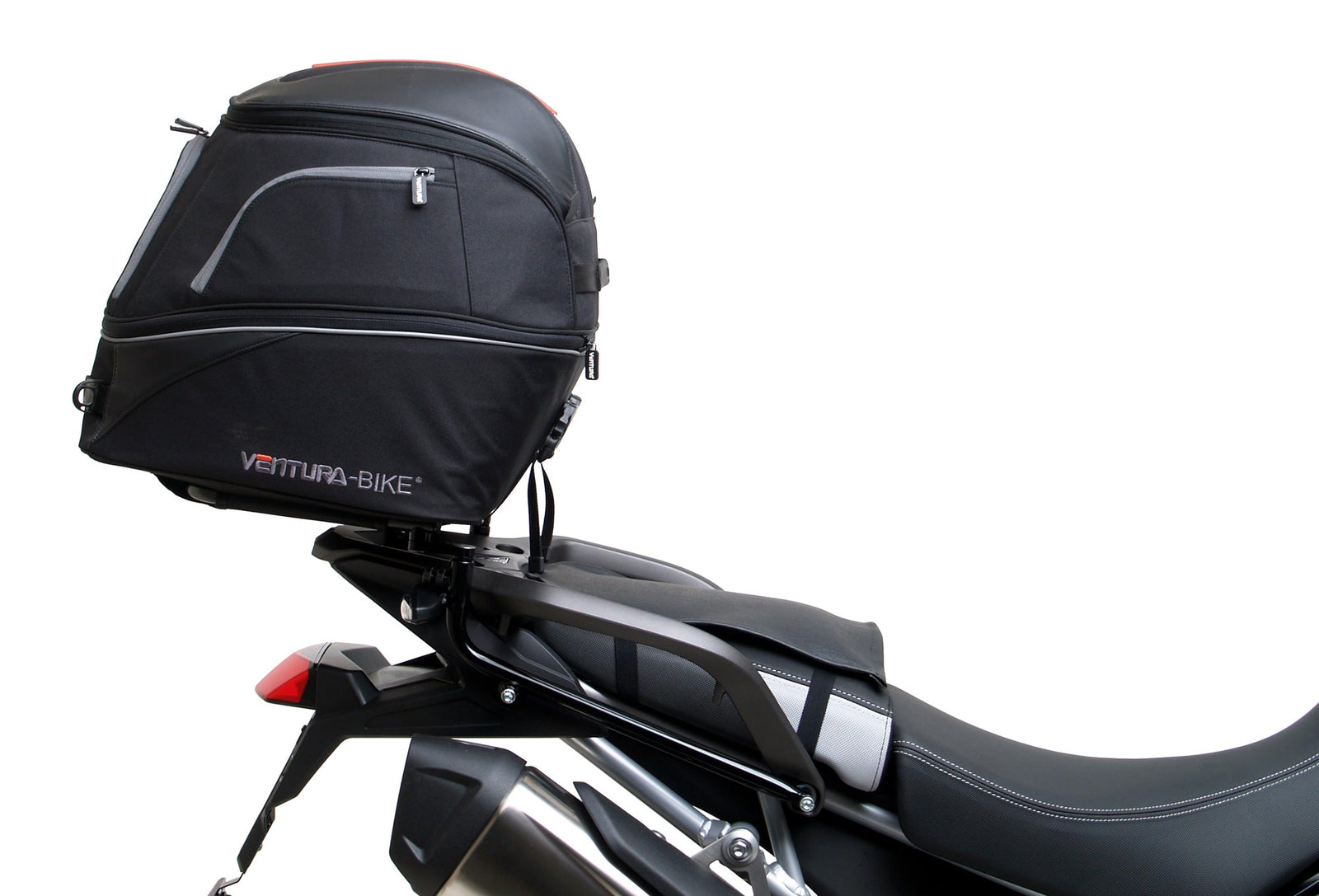 Ventura Aerodynamic Bike-Pack Systems make motorcycle luggage easy. The luggage rack system consists of 3 core components. The L-Brackets, the Luggage Racks and the Packs. Each system is individually designed and custom-made for your model bike to compliment its looks and handling.